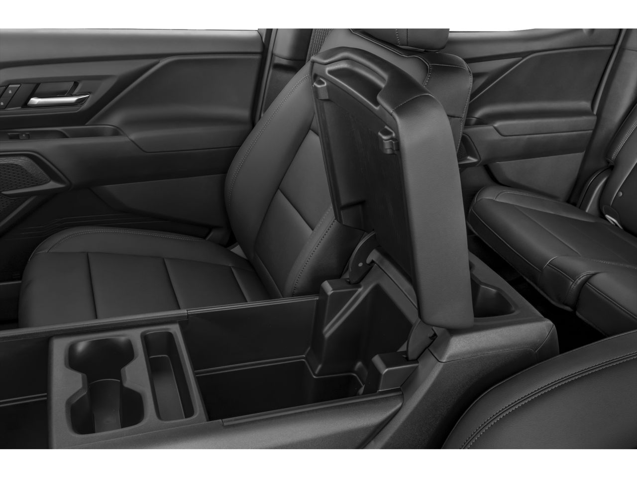 - Console, floor-mounted with lid 4 cup holders, front 2 are sliding, type-C USB ports, Auxiliary and 120V Power Outlets