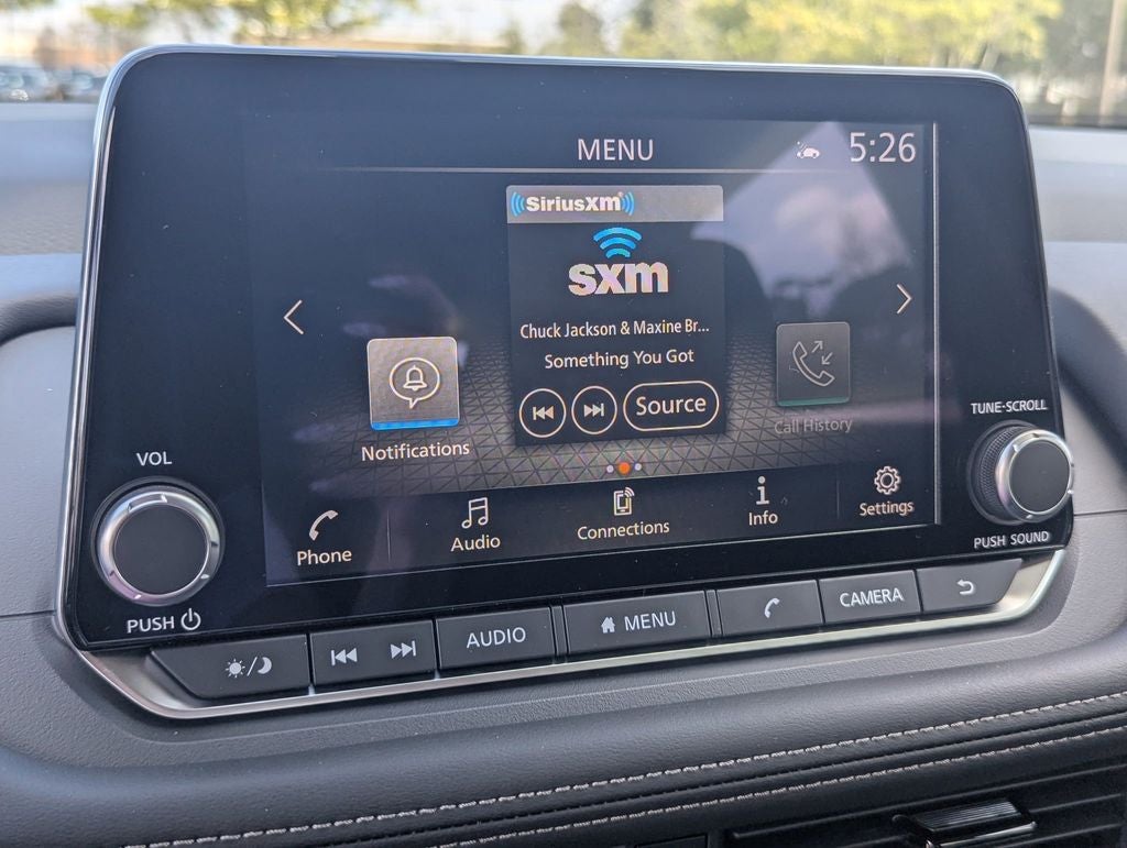 - Radio: AM/FM NissanConnect -inc: 6 speakers plus 2 tweeters, Apple CarPlay, Android Auto, 8" color touch screen display, Bluetooth®, 2 front USB type-C, Wi-Fi hotspot and NissanConnect Services powered by SiriusXM