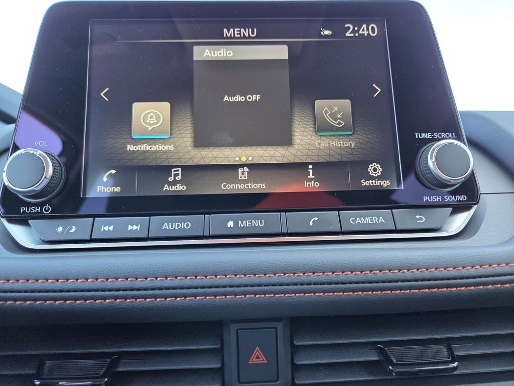 - Radio: AM/FM NissanConnect -inc: 6 speakers plus 2 tweeters, Apple CarPlay, Android Auto, 8" color touch screen display, Bluetooth®, 2 front USB type-C, Wi-Fi hotspot and NissanConnect Services powered by SiriusXM
