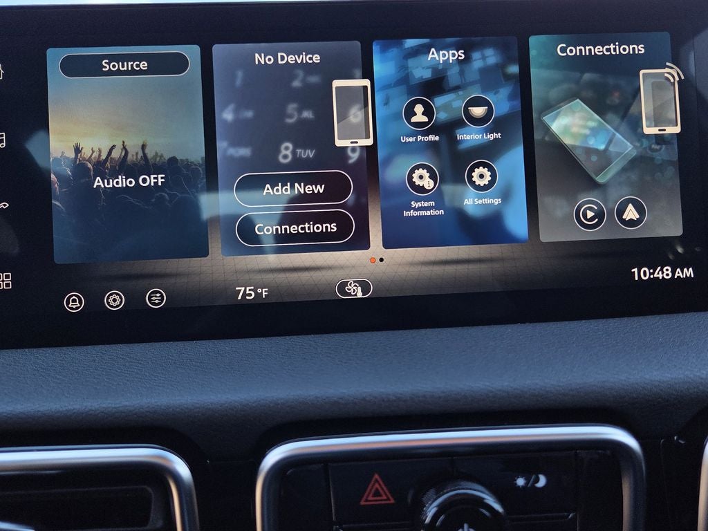 - Radio: AM/FM w/RDS/MP3 -inc: 4 speakers, 12.3" NissanConnect multimedia center display, Bluetooth® hands-free phone system, streaming audio via Bluetooth®, hands-free text messaging assistant, Siri Eyes Free, Google Assistant voice recognition, wireless Apple CarPlay and Android Auto and (2) front USB connection port (type C)