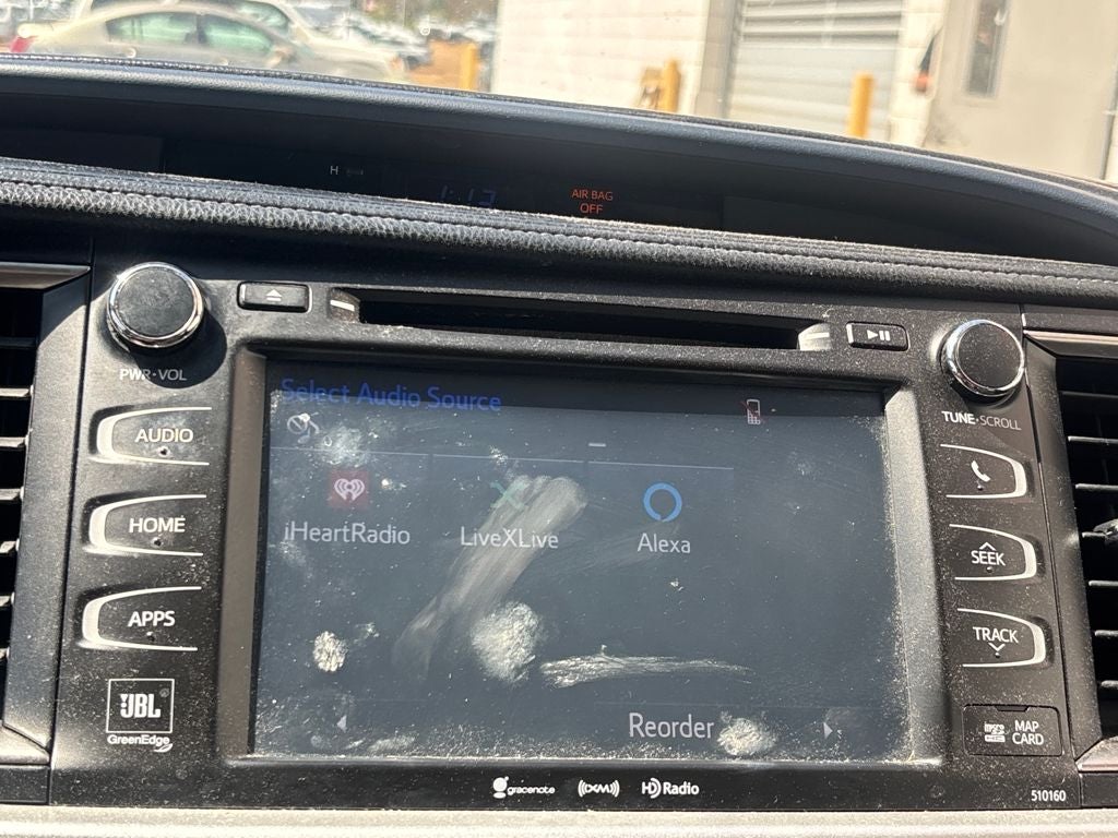 - Radio: Entune Premium JBL Audio w/Nav & App Suite -inc: the Entune Multimedia Bundle (8-inch high resolution touch-screen w/split screen display, AM/FM CD player, MP3/WMA playback capability, 12 JBL GreenEdge speakers, auxiliary audio jack, USB 2.0 port w/iPod connectivity and control, advanced voice recognition, hands-free phone capability, phone book access and music streaming via Bluetooth® wireless technology), Siri Eyes Free, Entune App Suite, Intelligent Touch controls, SiriusXM Radio w/3-month complimentary trial, HD radio, HD predictive traffic and doppler weather overlay, AM/FM cache radio, Gracenotes album cover art, integrated backup camera display w/dynamic gridlines