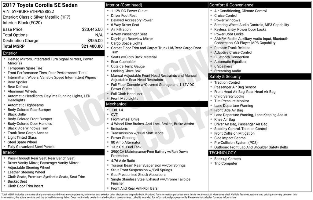 - Vehicle Name: Toyota Corolla