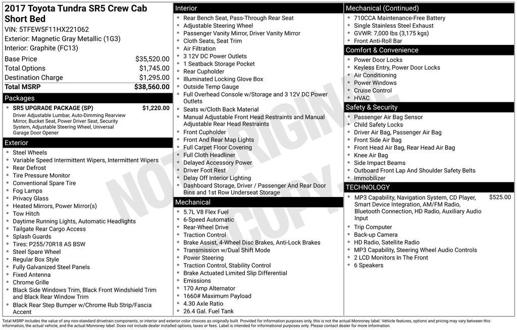- Vehicle Name: Toyota Tundra 2WD