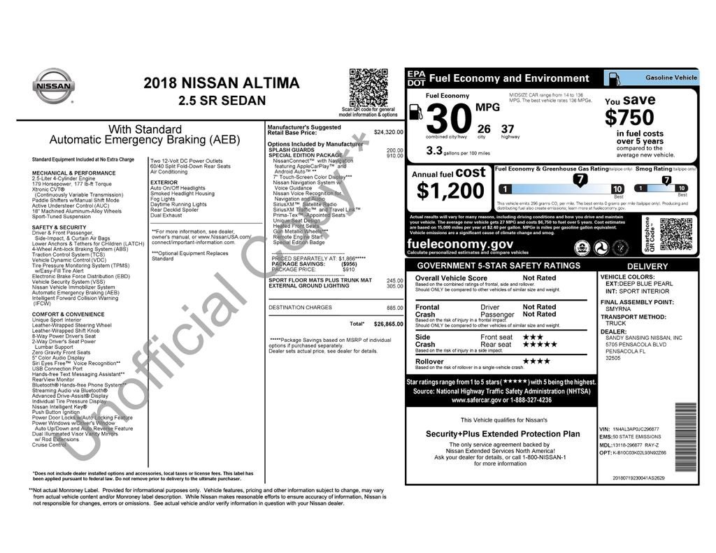 VIN: 1N4AL3AP0JC296877