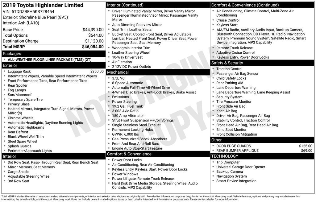 - Vehicle Name: Toyota Highlander