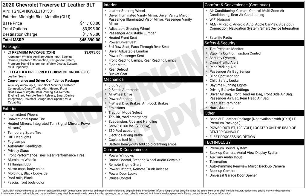 - Vehicle Name: Chevrolet Traverse