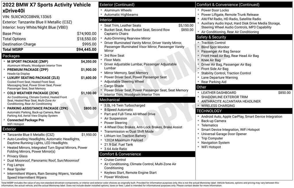 - Vehicle Name: BMW X7