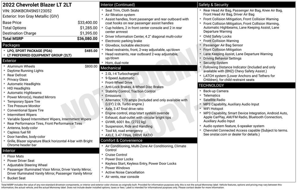 - Vehicle Name: Chevrolet Blazer