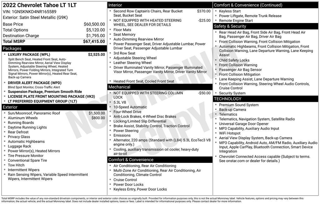 - Vehicle Name: Chevrolet Tahoe