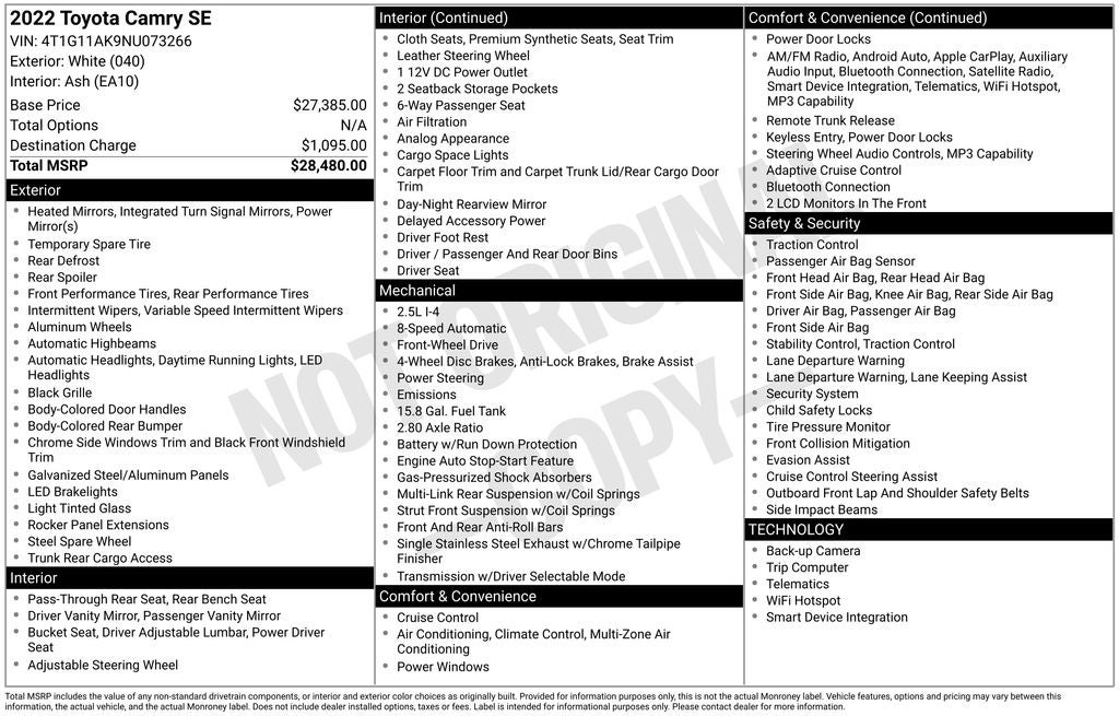 - Vehicle Name: Toyota Camry