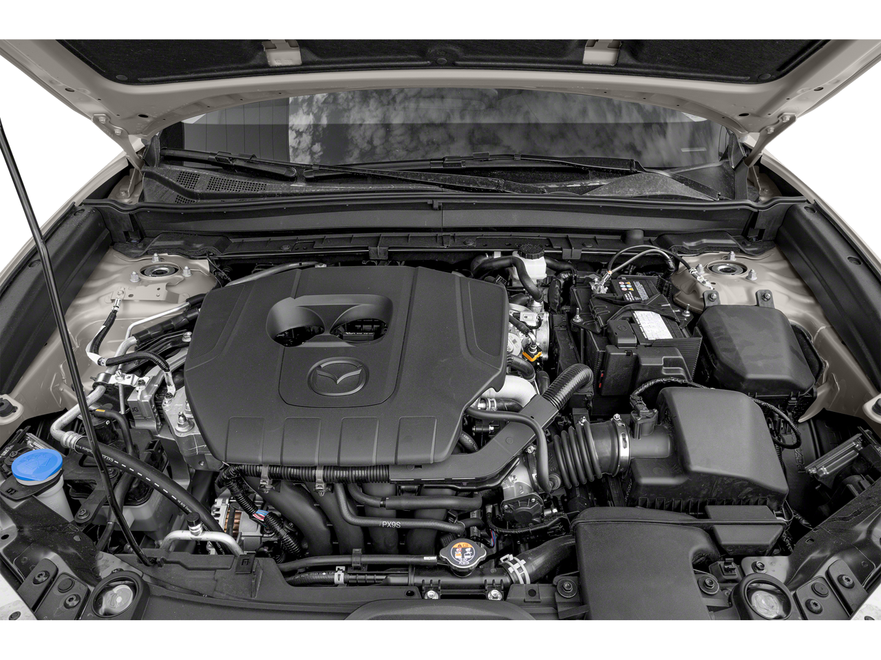 4-Wheel Disc Brakes, 4.095 Axle Ratio, 8 Speakers, ABS brakes, Air Conditioning, Alloy wheels, AM/FM radio, AppLink/Apple CarPlay and Android Auto, Auto High-beam Headlights, Automatic temperature control, Brake assist, Bumpers: body-color, Compass, Delay-off headlights, Driver door bin, Driver vanity mirror, Dual front impact airbags, Dual front side impact airbags, Electronic Stability Control, Emergency communication system: Mazda Connected Services (3-year complimentary trial included), Exterior Parking Camera Rear, Front anti-roll bar, Front Bucket Seats, Front Center Armrest, Front dual zone A/C, Front reading lights, Front wheel independent suspension, Fully automatic headlights, Illuminated entry, Knee airbag, Leather Shift Knob, Leather steering wheel, Leatherette Seat Trim, Low tire pressure warning, Machine Gray Metallic Paint, MAZDA CONNECT Infotainment System, Mazda Navigation System, Occupant sensing airbag, Outside temperature display, Overhead airbag, Panic alarm, Passenger door bin, Passenger vanity mirror, Power door mirrors, Power steering, Power windows, Radio data system, Radio: AM/FM/HD Audio System, Rain sensing wipers, Rear seat center armrest, Rear side impact airbag, Rear window defroster, Rear window wiper, Remote keyless entry, Speed control, Speed-sensing steering, Split folding rear seat, Spoiler, Steering wheel mounted audio controls, Tachometer, Telescoping steering wheel, Tilt steering wheel, Traction control, Trip computer, Turn signal indicator mirrors, Variably intermittent wipers, Wheels: 18 x 7J Aluminum Alloy.