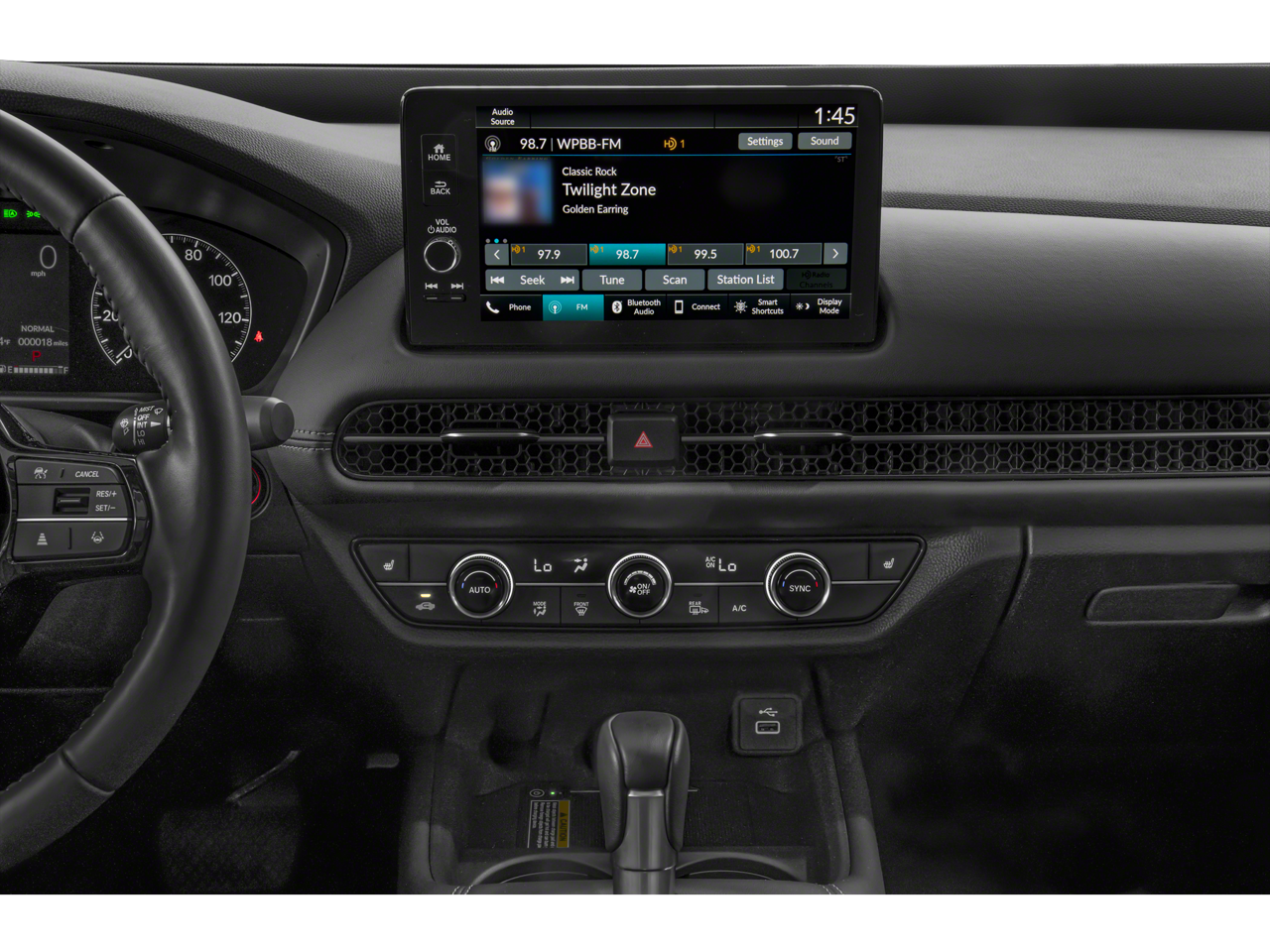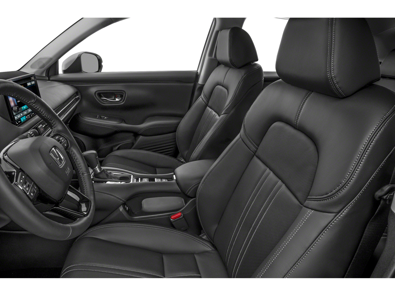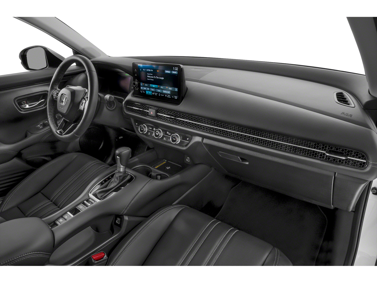 The Honda HR-V's spacious and well-appointed interior offers the perfect blend of style and functionality. Slip into the leather-wrapped steering wheel and experience the convenience of steering wheel-mounted audio controls, while the auto-dimming rearview mirror and dual-zone automatic climate control ensure your comfort. Stay connected with the intuitive 180-Watt Audio System with 8 Speakers, Apple CarPlay, and Android Auto integration.