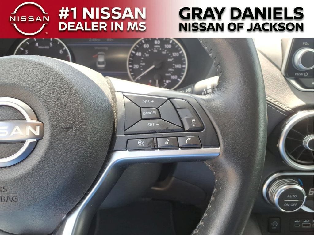 SV Package, CVT with Xtronic, Charcoal Cloth, 16 Alloy Wheels, 4-Wheel Disc Brakes, 6 Speakers, ABS brakes, Air Conditioning, Alloy wheels, AM/FM radio: SiriusXM, Auto High-beam Headlights, Blind Spot Warning, Brake assist, Bumpers: body-color, Delay-off headlights, Driver door bin, Driver vanity mirror, Dual front impact airbags, Dual front side impact airbags, Electronic Stability Control, Four wheel independent suspension, Front anti-roll bar, Front Bucket Seats, Front Center Armrest, Front reading lights, Fully automatic headlights, Illuminated entry, Knee airbag, Leather steering wheel, Low tire pressure warning, NissanConnect featuring Apple CarPlay and Android Auto, Occupant sensing airbag, Outside temperature display, Overhead airbag, Overhead console, Panic alarm, Passenger door bin, Passenger vanity mirror, Power door mirrors, Power steering, Power windows, Radio data system, Radio: AM/FM w/RDS/MP3/Aux-In, Rear anti-roll bar, Rear Parking Sensors, Rear side impact airbag, Rear window defroster, Remote keyless entry, Security system, Speed control, Speed-sensing steering, Split folding rear seat, Steering wheel mounted audio controls, Tachometer, Telescoping steering wheel, Tilt steering wheel, Traction control, Trip computer, Upgraded Cloth Seat Trim, Variably intermittent wipers.