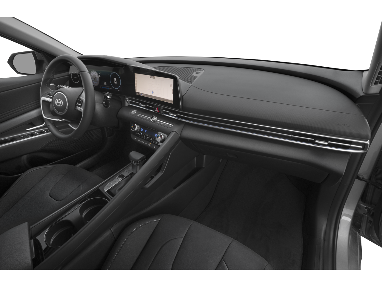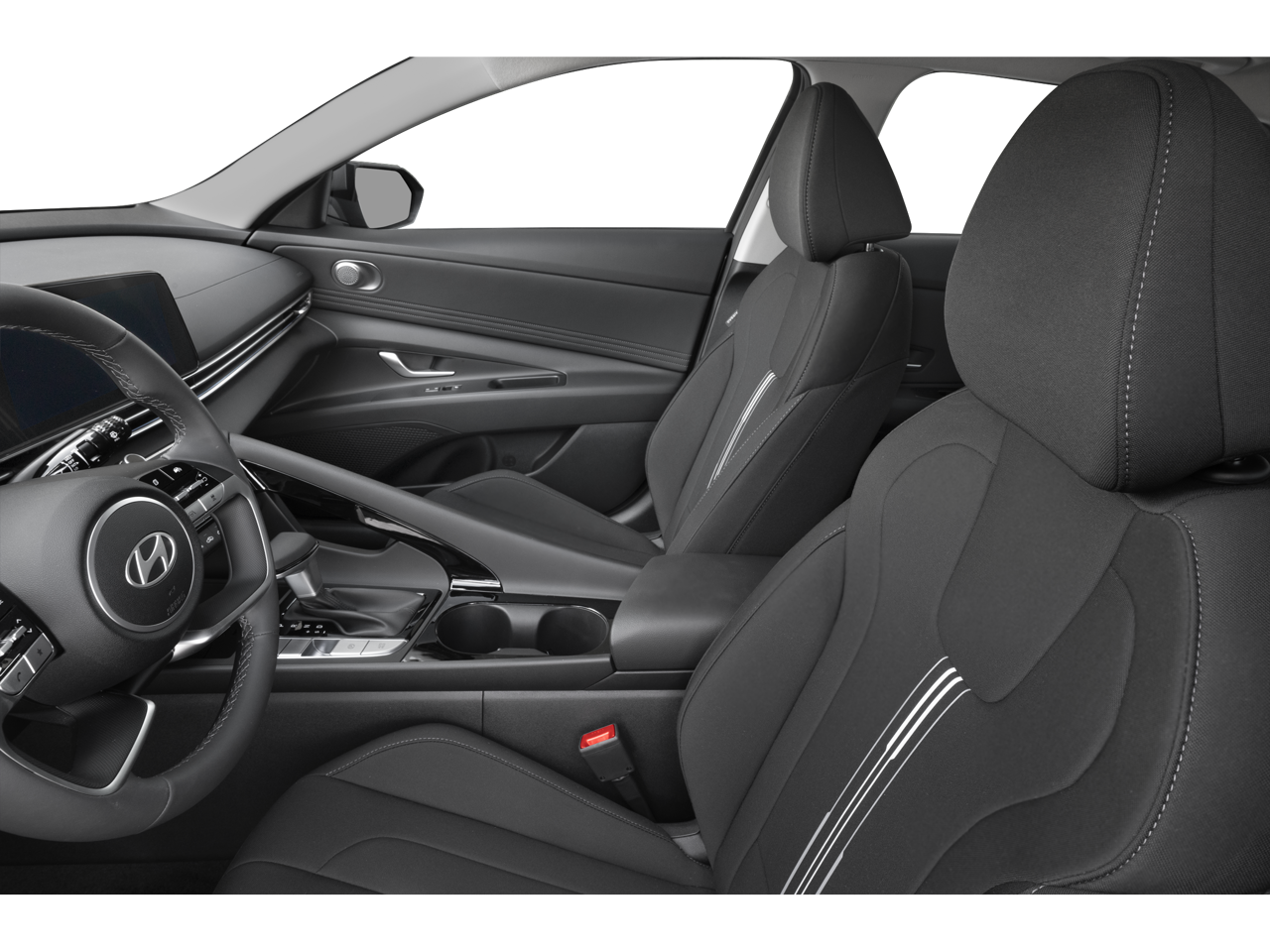 Step inside and you'll be surrounded by premium amenities, such as dual-zone automatic climate control, a leather-wrapped steering wheel, and heated front seats. The spacious cabin and split-folding rear seat provide ample room for passengers and cargo, making this Elantra the perfect companion for your adventures.