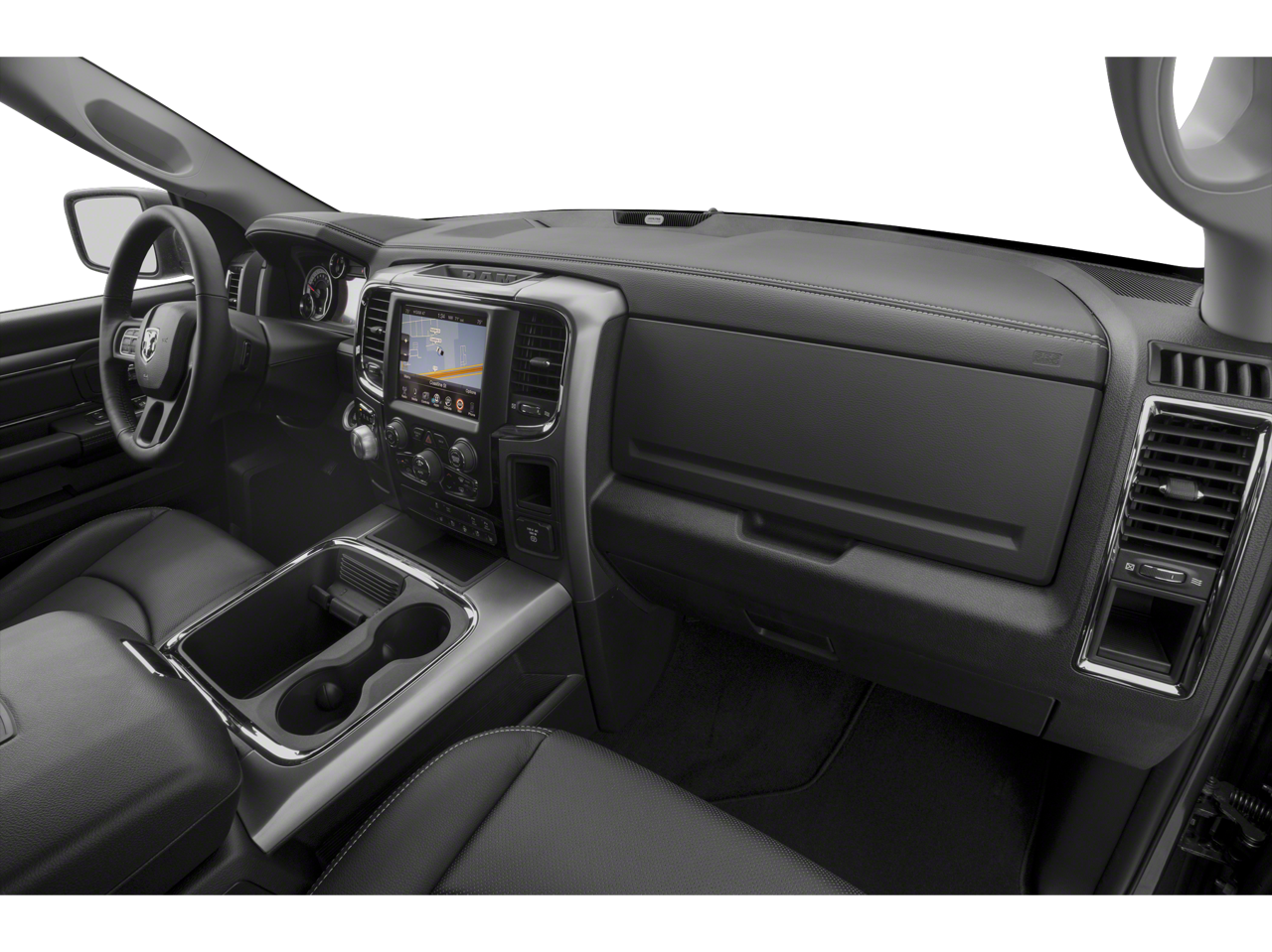 1-Yr SiriusXM Guardian Trial, 115V Auxiliary Power Outlet, 3.21 Rear Axle Ratio, 4-Wheel Disc Brakes, 40/20/40 Split Bench Seat, 5-Year SiriusXM Traffic Service, 5-Year SiriusXM Travel Link Service, 6 Speakers, 8.4 Touchscreen Display, ABS brakes, Active Grille Shutters, Air Conditioning, Alloy wheels, AM/FM radio: SiriusXM, Anti-Spin Differential Rear Axle, Apple CarPlay, Audio Jack Input for Mobile Devices, Auto-Dimming Exterior Mirrors, Auto-Dimming Rear-View Mirror, Big Horn Badge, Big Horn Regional Package, Black Exterior Mirrors, Brake assist, Bright/Bright Billets Grille, Bumpers: chrome, Charge Only Remote USB Port, Class IV Receiver Hitch, Compass, Delay-off headlights, Driver door bin, Dual front impact airbags, Dual front side impact airbags, Dual Rear Exhaust w/Bright Tips, Electric Shift-On-Demand Transfer Case, Electroluminescent Instrument Cluster, Electronic Shift, Electronic Stability Control, Exterior Mirrors Courtesy Lamps, Exterior Mirrors w/Heating Element, Exterior Mirrors w/Supplemental Signals, Folding Flat Load Floor Storage, Front & Rear Rubber Floor Mats, Front anti-roll bar, Front Armrest w/3 Cupholders, Front Center Armrest w/Storage, Front Center Seat Cushion Storage, Front Fog Lamps, Front reading lights, Front wheel independent suspension, Fully automatic headlights, Glove Box Lamp, Google Android Auto, GPS Antenna Input, GPS Navigation, HD Radio, Heated door mirrors, Illuminated entry, Integrated Voice Command w/Bluetooth®, Leather Wrapped Steering Wheel, LED Bed Lighting, Low tire pressure warning, Manufacturer's Statement of Origin, Media Hub (2 USB, AUX), Occupant sensing airbag, Outside temperature display, Overhead airbag, Overhead console, Overhead Console w/Garage Door Opener, Panic alarm, ParkSense Front/Rear Park Assist System, ParkView Rear Back-Up Camera, Passenger door bin, Passenger vanity mirror, Power 10-Way Driver Seat, Power door mirrors, Power Heated Fold-Away Mirrors, Power Lumbar Adjust, Power steering, Power windows, Power-Folding Mirrors, Premium Cloth 40/20/40 Bench Seat, Protection Group, Quick Order Package 27S Big Horn, Radio data system, Radio: Uconnect 4C Nav w/8.4 Display, Radio: Uconnect 4C w/8.4 Display, Rear 60/40 Split Folding Seat, Rear anti-roll bar, Rear Dome w/On/Off Switch Lamp, Rear Floor Mats, Rear Power Sliding Window, Rear seat center armrest, Rear step bumper, Remote keyless entry, Remote Start System, Remote USB Port, Security Alarm, SiriusXM Satellite Radio, SiriusXM Traffic Plus, SiriusXM Travel Link, Speed control, Steering Wheel Mounted Audio Controls, Storage Tray, Sun Visors w/Illuminated Vanity Mirrors, Tachometer, Tilt steering wheel, Tip Start, Tow Hooks, Traction control, Trip computer, Universal Garage Door Opener, USB Host Flip, Variably intermittent wipers, Voltmeter, Wheel to Wheel Side Steps, Wheels: 20 x 8 Aluminum Chrome Clad.