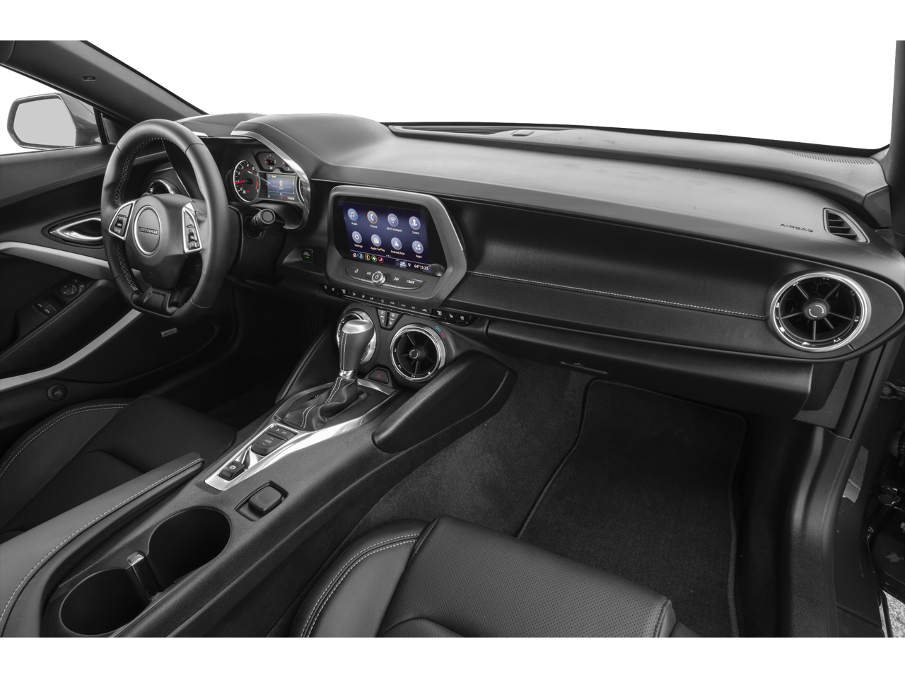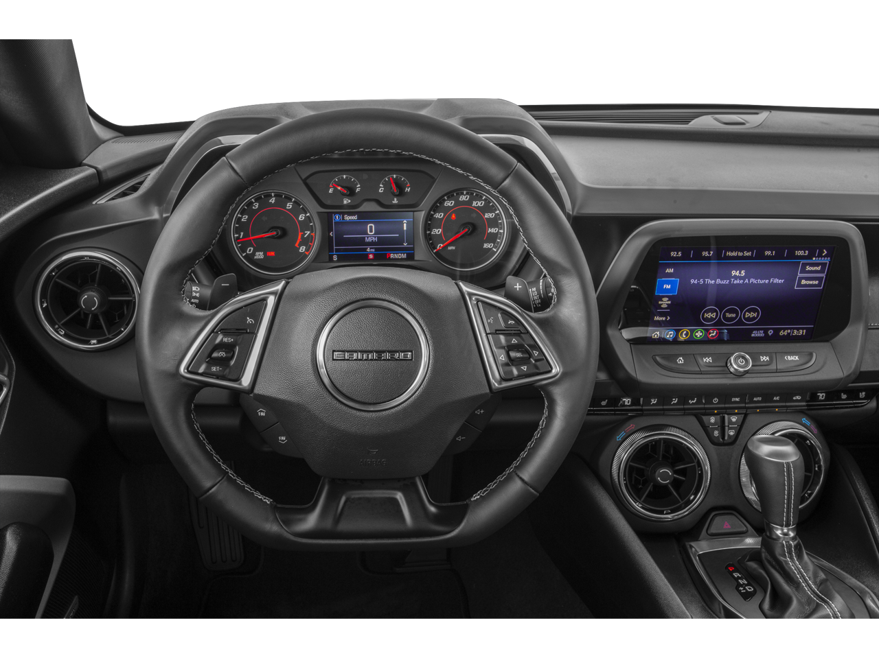 18 Silver-Painted Aluminum Wheels, 2.77 Rear Axle Ratio, 4-Wheel Disc Brakes, 6-Way Power Front Passenger Seat Adjuster, 8-Way Power Driver Seat Adjuster, ABS brakes, Air Conditioning, Alloy wheels, AM/FM radio: SiriusXM, Apple CarPlay/Android Auto, Automatic temperature control, Bluetooth® For Phone, Bose Premium 9-Speaker Audio System Feature, Brake assist, Bumpers: body-color, Cargo Net, Compass, Decklid-Mounted Lip Spoiler, Delay-off headlights, Driver door bin, Driver vanity mirror, Dual front impact airbags, Dual front side impact airbags, Electronic Stability Control, Exterior Parking Camera Rear, Four wheel independent suspension, Front anti-roll bar, Front Bucket Seats, Front Center Armrest, Front dual zone A/C, Front License Plate Bracket, Front reading lights, Front Sport Bucket Seats, Fully automatic headlights, Heated Driver & Front Passenger Seats, Heated front seats, Illuminated entry, Knee airbag, Leather Shift Knob, Leather-Trimmed Seat Trim, LED Taillamps, Low tire pressure warning, Occupant sensing airbag, Outside temperature display, Overhead airbag, Paddle-Shift Manual Controls, Panic alarm, Passenger door bin, Passenger vanity mirror, Power door mirrors, Power driver seat, Power passenger seat, Power steering, Power Sunroof, Power windows, Premium audio system: Chevrolet Infotainment System, Premium Carpeted Floor Mats w/RS Logo (LPO) (DISC), Radio data system, Rear anti-roll bar, Rear window defroster, Remote keyless entry, Remote Vehicle Starter System, RS Package, Security system, SiriusXM Radio, Speed control, Speed-sensing steering, Steering wheel mounted audio controls, Tachometer, Telescoping steering wheel, Tilt steering wheel, Tire Inflation Kit, Traction control, Trip computer, Variably intermittent wipers, Ventilated Driver & Front Passenger Seats, Ventilated front seats, Voltmeter, Wheels: 20 5-Split Spoke Machined-Face Aluminum.